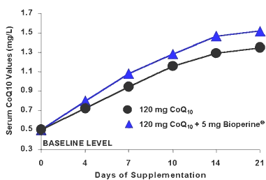 Finally, this graph shows the serum levels after a 21 day trial in terms of sustained CoQ10 increase.