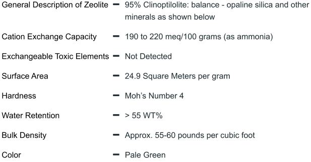 • Our Clinoptilolite Zeolite is exceptionally pure (see its assay and CEC rating).